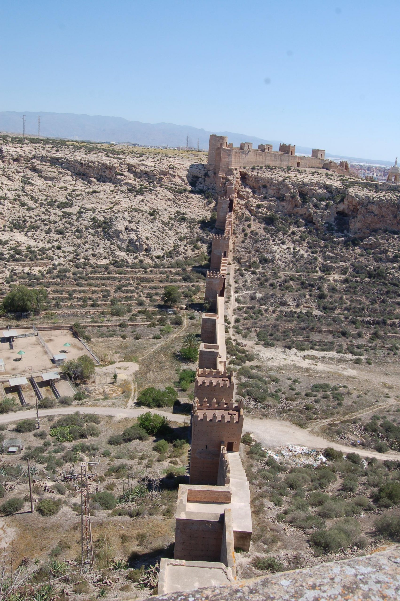 Almeria selbst wurde im Jahr 955 vom Emir und Kalifen von Cordoba, Abd-ar-Rahman III, Hafenstadt für sein Großreich gegründet. Unmittelbar darauf befahl er den Bau der Alcazaba um das Vordringen des Fatimiden aus Tunis zu verhindern. Allerdings wurden die Arbeiten erst zu Zeiten des Kleinreichs Almería im 11. Jahrhundert beendet. Mit 43.000 m² ist sie die größte maurische Festung in Spanien. Im 9. Jahrhunderts führte der Import von Seide zu Almerías Wohlstand, aber auch Marmor aus den umliegenden Bergen, Getreide aus dem Maghreb, Leinen aus Ägypten, Färbe-Pflanzen aus Italien und nicht zuletzt Sklaven aus Nordeuropa wurden von hier aus im ganzen Mittelmeer-Raum gehandelt. Bis ins 15.Jahrhundert blieb Almeria unter arabisch – muslimischem Einfluß. Dann wurde es von den katholischen Königen Spaniens erobert….